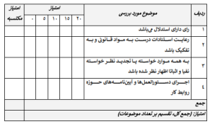 ب) اگر برخي از پروندهها واجد شرايط بود، نصف نمره و اگر هيج يک از پروندها مبالغ راي را به تفکيک ننوشته بود امتياز صفر لحاظ شود.