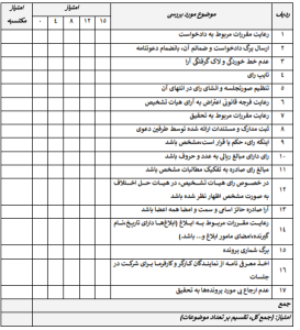 در صورتي که همه موارد در پروندههاي بررسي شده رعايت شود نمره کامل لحاظ گردد، در غير اين صورت با توجه به پروندههاي داراي نقص امتياز پايين تري لحاظ شود.