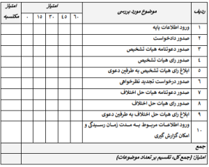 ج- امتیازات مربوط به بررسی نرمافزار مراجع حل اختلاف.